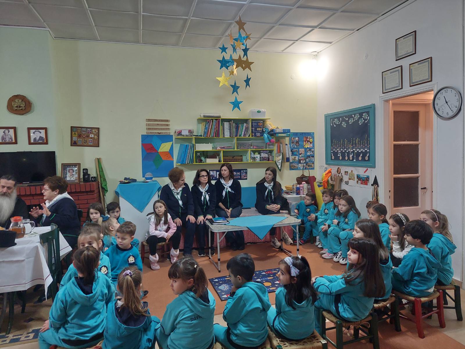 Εκεί, μας δόθηκε η ευκαιρία να τον ξεναγήσουμε στο σπίτι του Οδηγισμού, να απολαύσει ένα ζεστό τσάι, να γνωρίσει και να συνομιλήσει με τα παιδιά των ομάδων μας (Αστέρια, Πούλια, Οδηγοί, Μεγάλοι Οδηγοί),καθώς και τα στελέχη μας.