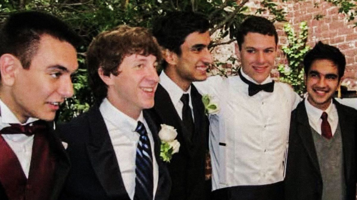 Ο Φίλιππος Σιδήρογλου (πρώτος αριστερά) με τον Ζόραν Μαμντάνι (τρίτος από δεξιά) στη γιορτή αποφοίτησης στο Λύκειο Bronx Science το 2010. Φίλιππος Σιδήρογλου / NEWS 24/7