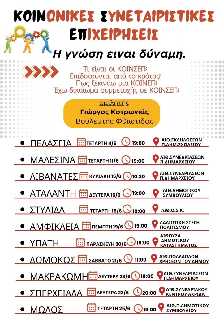 Σάββατο 21/6/ 2025 και ώρα 11:00 στον Δομοκό στην αίθουσα πολλαπλών χρήσεων του Δήμου.