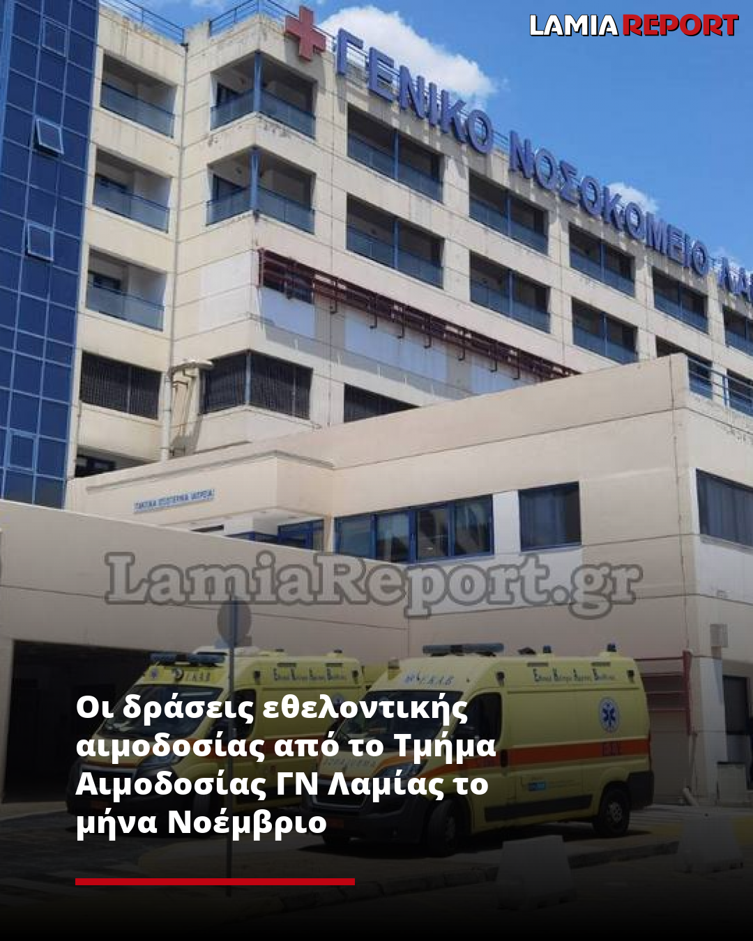 Οι δράσεις εθελοντικής αιμοδοσίας από το Τμήμα Αιμοδοσίας ΓΝ Λαμίας το μήνα Νοέμβριο
