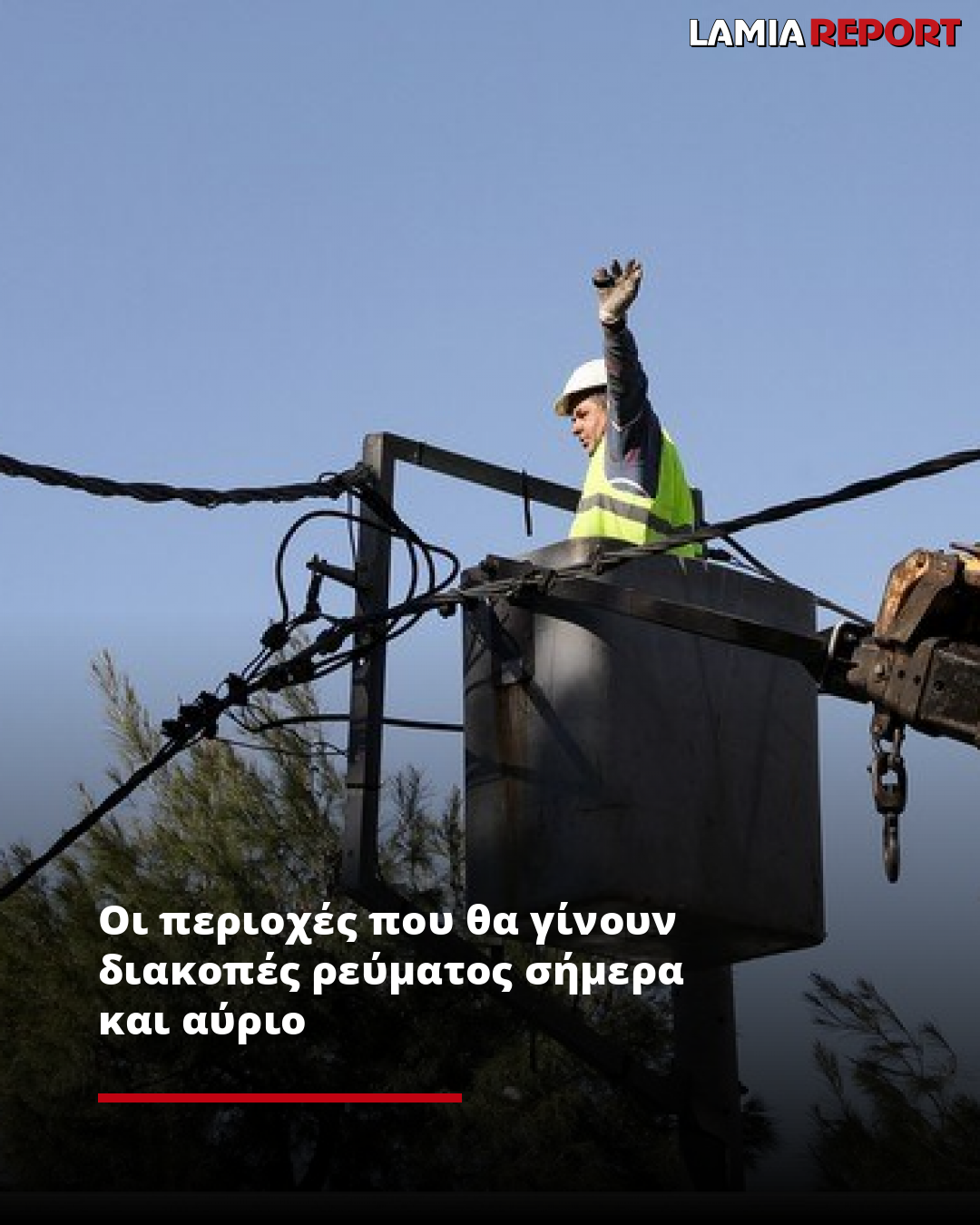 Από ώρα 07:30’ έως 16:00’ στο Δήμο Λοκρών μένουν στη διακοπή το Βουστάσιο ΚΟΓΙΟΝΟΥ, το Πάρκο ΔΗΜΑΚΗ, οι οικίες πλησίον του Πάρκου ΔΗΜΑΚΗ, το Ποιμνιοστάσιο ΑΡΓΥΡΗ ΦΟΥΡΛΕΜΑΔΗ, ΑΝΤ/ΣΙΑ ΘΕΟΛΟΓΟΥ και Φ/Β της περιοχής.