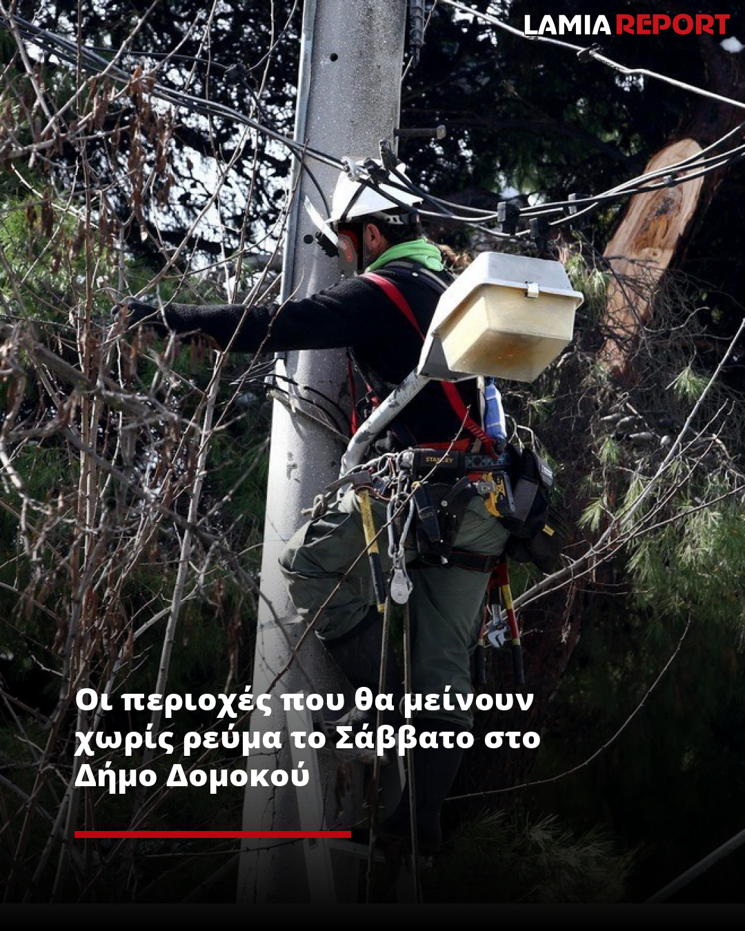 Οι περιοχές που θα μείνουν χωρίς ρεύμα το Σάββατο στο Δήμο Δομοκού