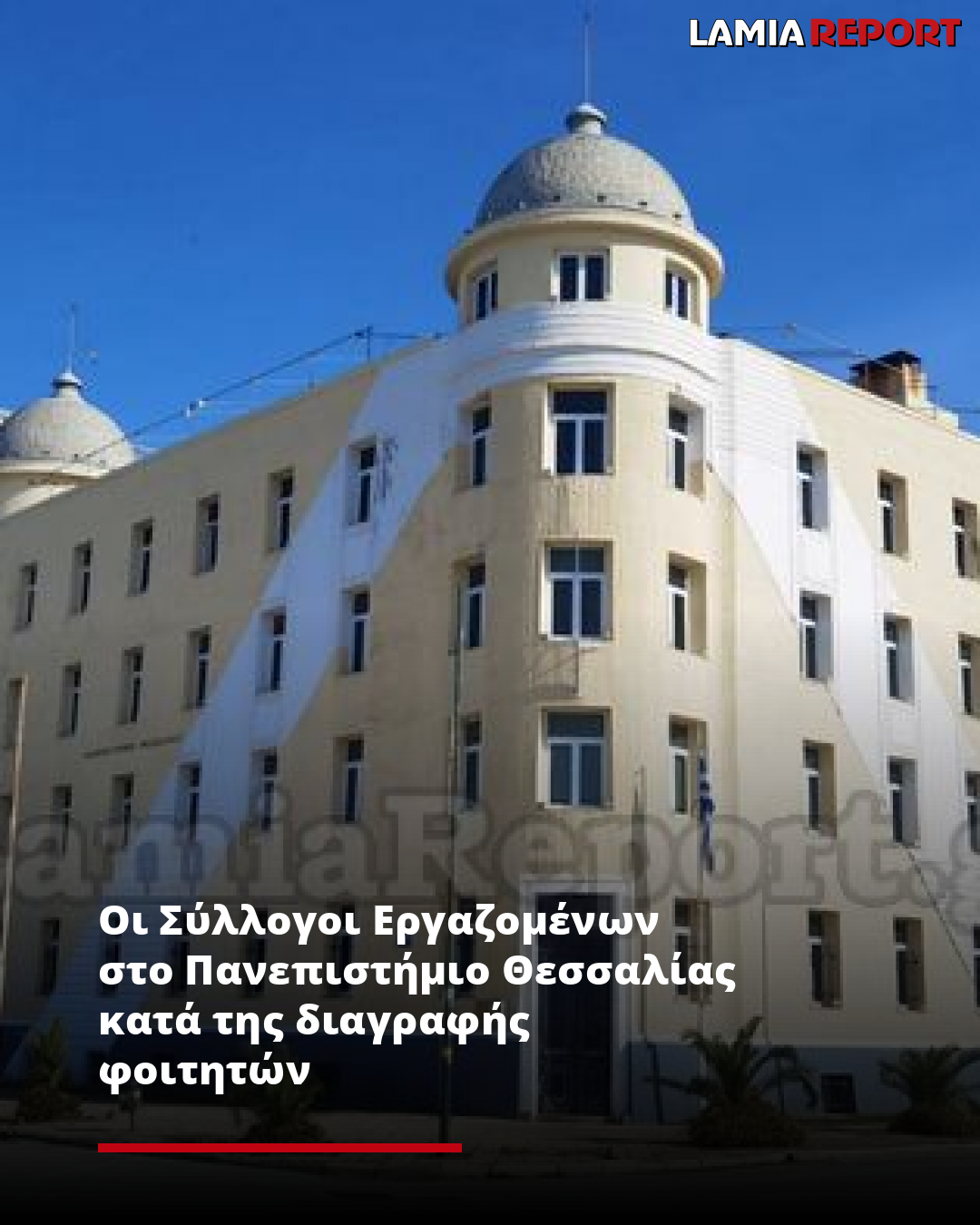 «Οι Σύλλογοι Εργαζομένων του Πανεπιστημίου Θεσσαλίας εκφράζουμε τη σαφή και κατηγορηματική μας αντίθεση σε οποιαδήποτε διαδικασία διαγραφής φοιτητών. Την κοινή ανακοίνωση υπογράφουμε οι: