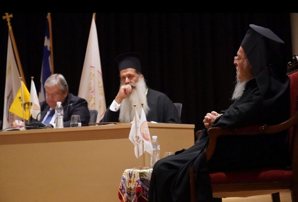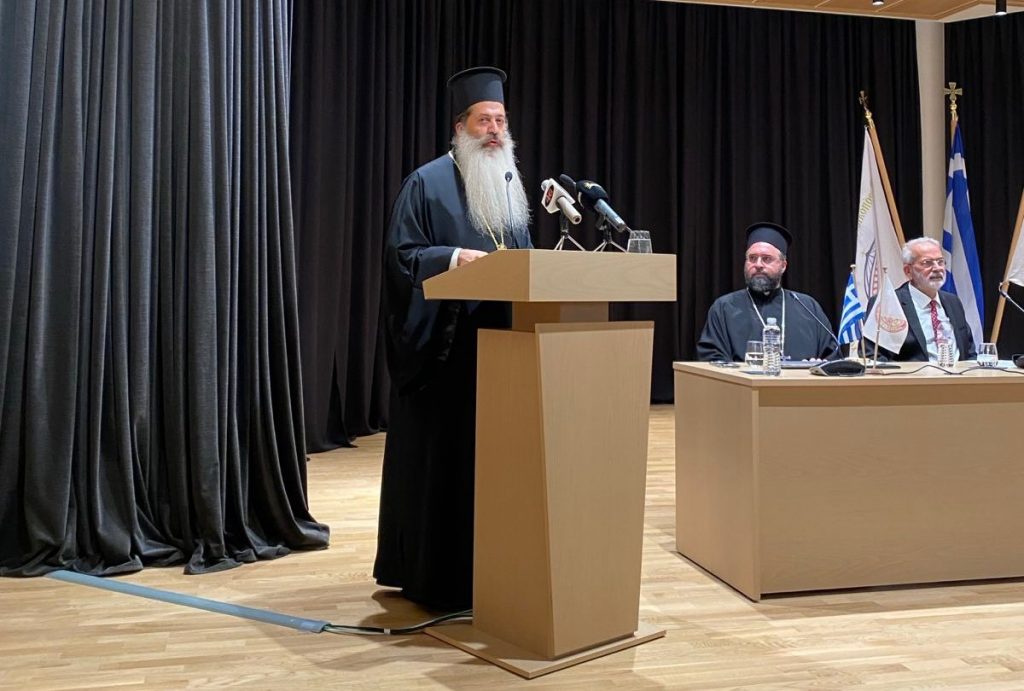Ο Σεβασμιώτατος κ. Συμεών αναφέρθηκε στην εισήγηση του στις σχέσεις της Εκκλησίας της Ελλάδος με την Μεγάλη Εκκλησίας της Κωνσταντινούπολης, όπως αυτές, μεταξύ των άλλων, κατοχυρώνονται και στο άρθρο 3 του Ελληνικού Συντάγματος, και πραγματοποίησε μια αναδρομή στην τελευταία 35ετία, όπου και η Εκκλησία της Ελλάδος τόσο επί των μακαριστών Αρχιεπισκόπων Σεραφείμ και Χριστοδούλου όσο και επί του νυν Αρχιεπισκόπου κ.κ. Ιερωνύμου βάδισε εξ αρχής και συνεχίζει να βαδίζει «αναπόσπαστα ενωμένη δογματικά» με το Οικουμενικό Πατριαρχείο και στο ζήτημα της προστασίας του φυσικού περιβάλλοντος, της οικολογίας και της «οικοφιλίας». Ο κ. Συμεών τόνισε ιδιαίτερα την σημασία τόσο του ιστορικού προδρομικού και προφητικού Μηνύματος, που εξέπεμψαν οι Προκαθήμενοι των Ορθοδόξων Εκκλησιών στο ιστορικό Συλλείτουργο των Προκαθημένων της 15ης Μαρτίου 1992, την Κυριακή της Ορθοδοξίας, στον Πάνσεπτο Πατριαρχικό Ναό στο Φανάρι, όσο και στην τεράστια θεολογική και ιεροσυνοδική συμβολή της εν Κρήτη Αγίας και Μεγάλης Συνόδου της Ορθόδοξου Εκκλησίας στην θεολογική και ποιμαντική αντιμετώπιση του ζητήματος.