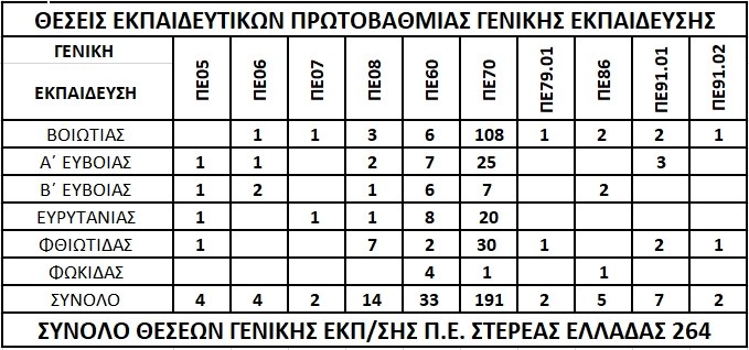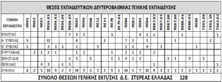 Όλες οι κενές οργανικές θέσεις Πρωτοβάθμιας & Δευτεροβάθμιας Εκπαίδευσης στη Στερεά Ελλάδα