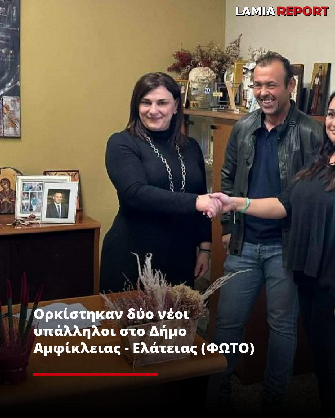 Δύο νέα πρόσωπα εντάχθηκαν στο δυναμικό των μονίμων υπαλλήλων του Δήμου Αμφίκλειας - Ελάτειας μέσω της προκήρυξης 7Κ/2024 του ΑΣΕΠ.