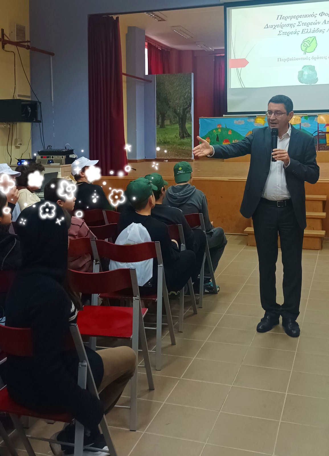 Ιδιαίτερη αξία στη δράση έδωσε η παρουσία του Δημάρχου Λοκρών, κ. Αθανασίου Ζεκεντέ, ο οποίος συνομίλησε με τους μαθητές σε ένα ανοιχτό και ζωντανό κλίμα. Με απλά παραδείγματα και κατανοητά στοιχεία, ανέδειξε τη σημασία της ανακύκλωσης τόσο σε τοπικό όσο και σε εθνικό επίπεδο, επισημαίνοντας τις λανθασμένες πρακτικές στη διαχείριση αποβλήτων. Παράλληλα, κάλεσε τα παιδιά να αναλάβουν ενεργό ρόλο, λειτουργώντας ως πρεσβευτές της περιβαλλοντικής συνείδησης στις οικογένειες και την καθημερινότητά τους.