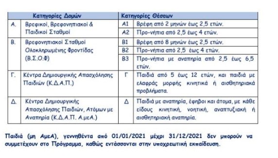 2. Κατηγορίες δομών /θέσεων που δύνανται να συμμετάσχουν