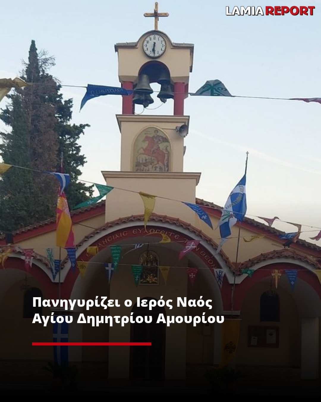 Τη μνήμη του Αγίου Δημητρίου τιμά και εορτάζει ο φερώνυμος Ιερός Ναός στο Αμούρι του Δήμου Λαμιέων, 25 και 26 Οκτωβρίου.