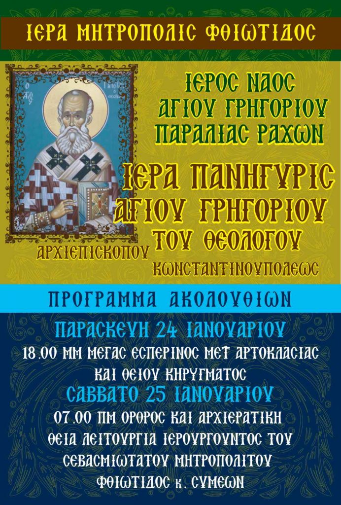 Η Ιερά Μητρόπολη Φθιώτιδας πανηγυρίζει τον Άγιο Γρηγόριο τον Θεολόγο, Αρχιεπισκόπου Κωνσταντινουπόλεως.