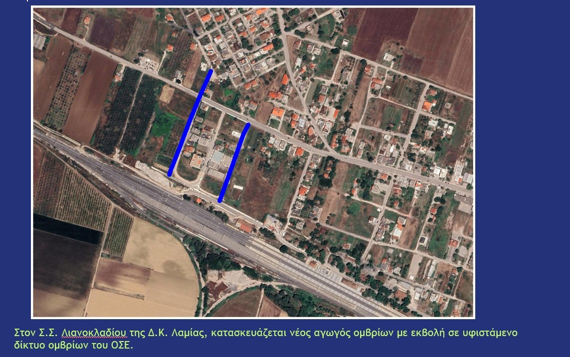 - Στο Σ.Σ. Λιανοκλαδίου, κατασκευάζεται νέος αγωγός ομβρίων με εκβολή σε υφιστάμενο δίκτυο ομβρίων του ΟΣΕ.
