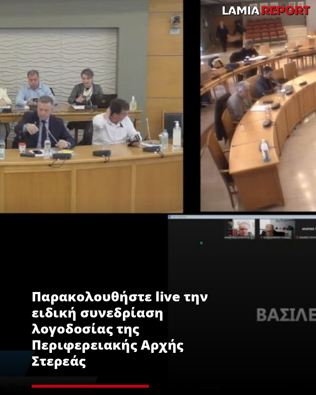 Παρακολουθήστε live την ειδική συνεδρίαση λογοδοσίας της Περιφερειακής Αρχής Στερεάς