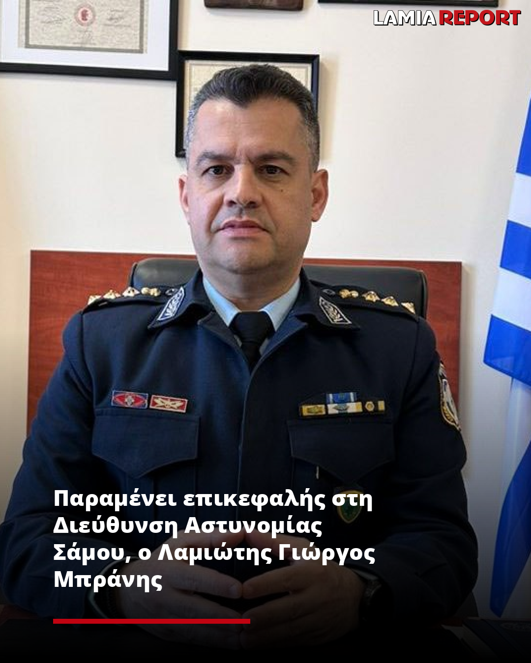 Μετά τις ανακοινώσεις - τοποθετήσεις και των Αστυνομικών Διευθυντών, οριστικοποιήθηκε η παραμονή του Λαμιώτη Αστυνομικού Διευθυντή Γιώργου Μπράνη ως επικεφαλής της Διεύθυνσης Αστυνομίας Σάμου.