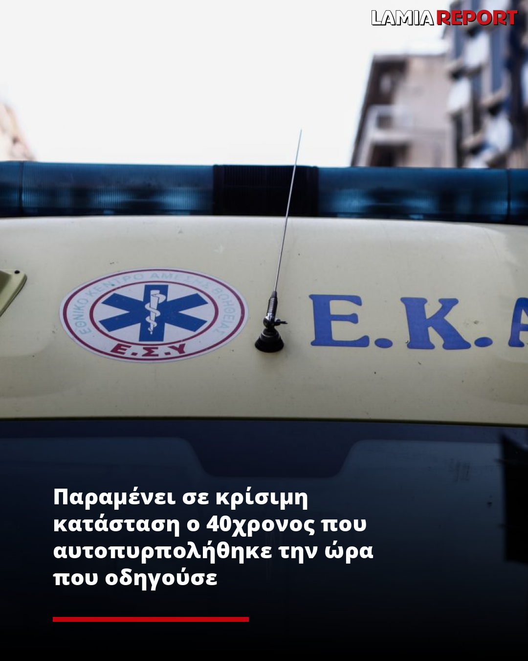 Παραμένει σε κρίσιμη κατάσταση ο 40χρονος που αυτοπυρπολήθηκε την ώρα που οδηγούσε