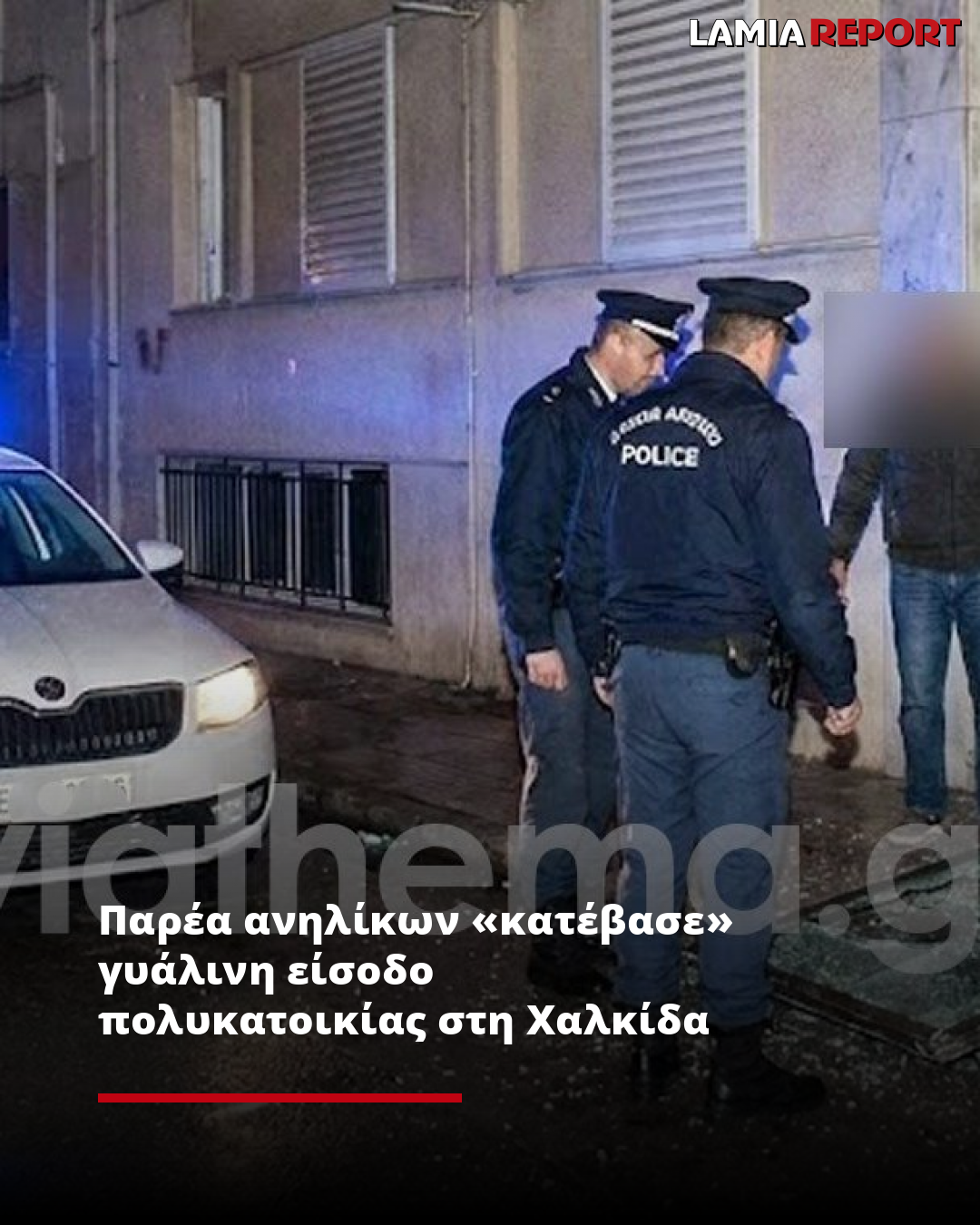 Παρέα ανηλίκων «κατέβασε» γυάλινη είσοδο πολυκατοικίας στη Χαλκίδα
