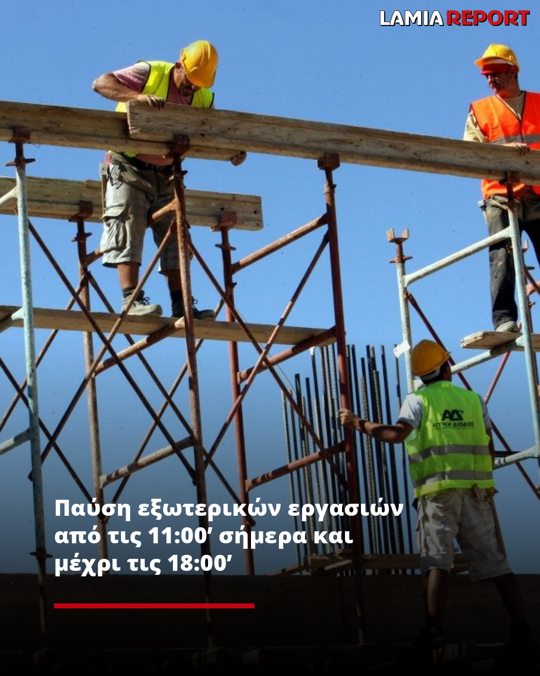 Παύση εξωτερικών εργασιών από τις 11:00’ σήμερα και μέχρι τις 18:00’