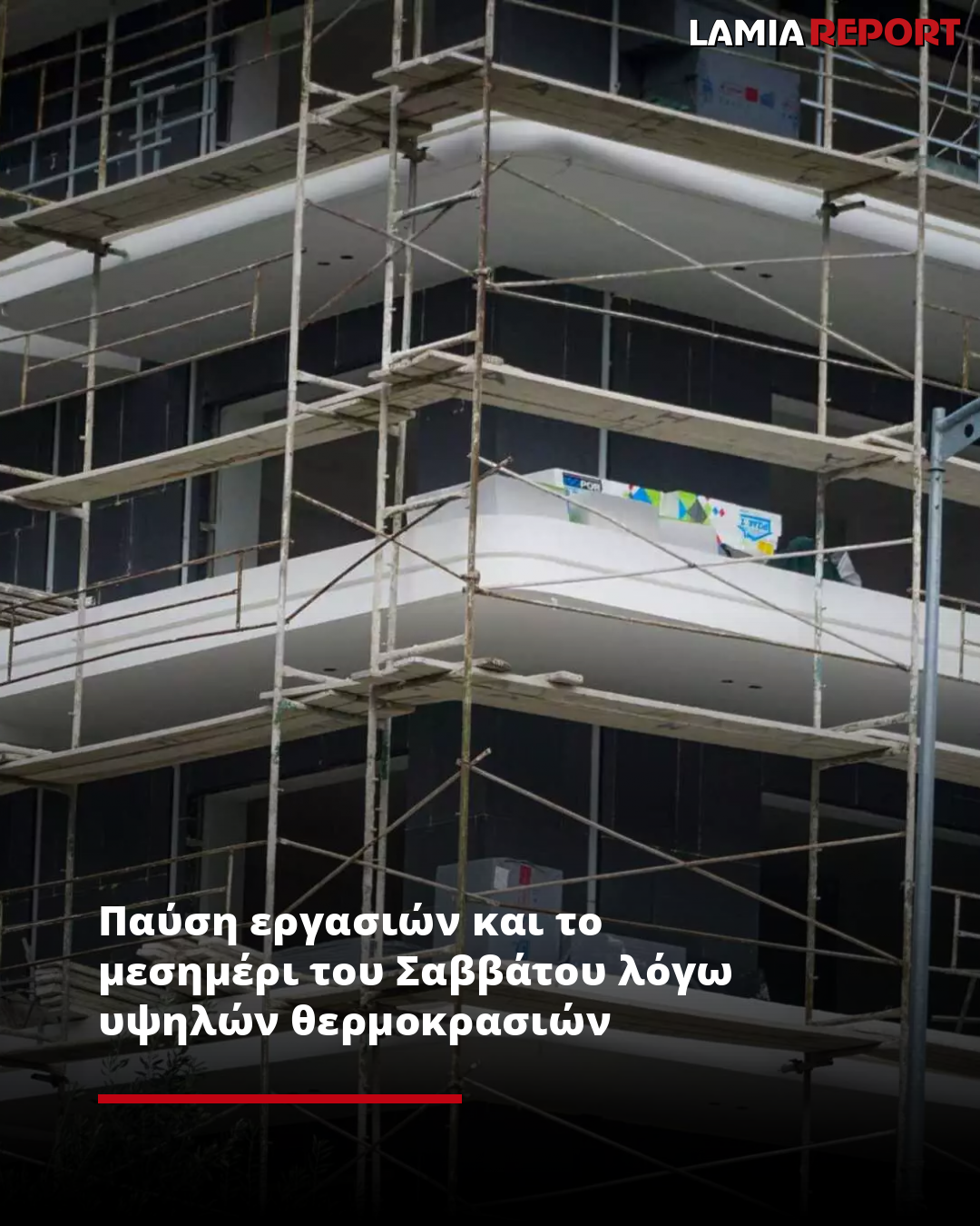 Για τους εργαζόμενους επιχειρήσεων που βρίσκονται σε περιοχές, στις οποίες σύμφωνα με τα νεότερα προγνωστικά στοιχεία της Εθνικής Μετεωρολογικής Υπηρεσίας (ΕΜΥ) αναμένεται να επικρατήσουν ιδιαίτερα υψηλές θερμοκρασίες και επίπεδα δυσφορίας (WBGT) στις Περιφέρειες Κεντρικής Μακεδονίας, Ανατολικής Μακεδονίας και Θράκης και Θεσσαλίας, στην Περιφερειακή Ενότητα Αιτωλοακαρνανίας, στην Πελοπόννησο και την ανατολική Ρόδο, καθίσταται υποχρεωτική παύση εργασιών, κατά το χρονικό διάστημα 12.00΄-17.00΄, και στην Αττική (εκτός νήσων), στην Περιφέρεια Ηπείρου, στις Περιφερειακές Ενότητες Φθιώτιδας, Βοιωτίας, Εύβοιας και στην Νότια Κρήτη καθίσταται υποχρεωτική παύση εργασιών, κατά το χρονικό διάστημα 12.00΄-16.00΄, το Σάββατο 26.07.2025, σε χειρωνακτικές εργασίες που εκτελούνται σε εξωτερικό χώρο, όπως εργασίες σε τεχνικά και οικοδομικά έργα, εργοτάξια, ναυπηγοεπισκευαστικές ζώνες, διανομή και μεταφορά προϊόντων και αντικειμένων με δίτροχο όχημα, πατίνι, τροχοπέδιλα (delivery), κ.λπ.