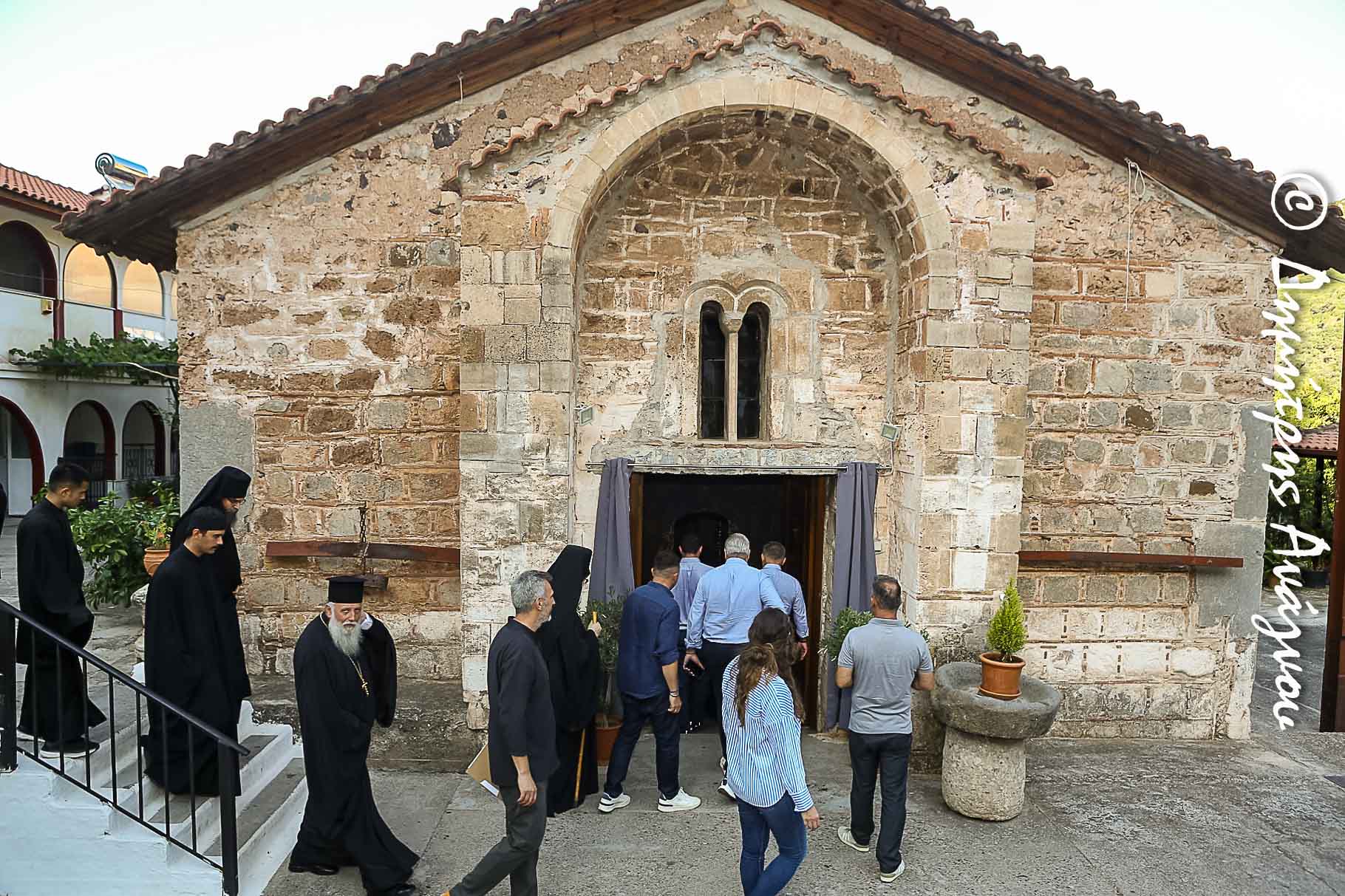 Μετά την επίσκεψη του κ. Περιφερειάρχη στο Ιερό Επισκοπείο Θερμοπυλών και Μενδενίτης ο Σεβασμιώτατος συνόδευσε τον κ. Περιφερειάρχη και τους αιρετούς Αντιπεριφερειάρχες για ένα σύντομο προσκύνημα στην Ιερά Μονή Μεταμορφώσεως Σωτήρος Καμένων Βούρλων, παρουσία και του Δημάρχου Καμένων Βούρλων κ. Ηλία Κυρμανίδη, προκειμένου να ανακοινωθεί και στην αδελφότητα της Μονής το ευχάριστο νέο, ενώ επίσης ο κ. Συμεών ανακοίνωσε τα ευχάριστα και στον Καθηγούμενο, Αρχιμ. π. Γερμανό Γιαντσίδη, και στην αδελφότητα της Ιεράς Μονής Αγάθωνος.