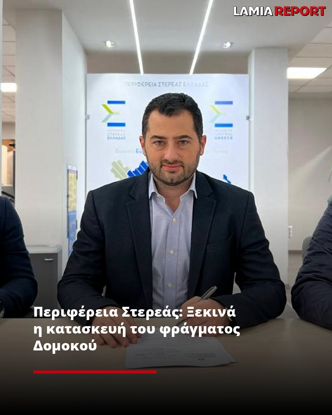 Την υπογραφή του στη σύμβαση κατασκευής του έργου: «ΚΑΤΑΣΚΕΥΗ ΥΔΡΟΔΟΤΙΚΟΥ ΦΡΑΓΜΑΤΟΣ, ΕΞΩΤΕΡΙΚΟΥ ΥΔΡΑΓΩΓΕΙΟΥ ΚΑΙ ΔΙΥΛΙΣΤΗΡΙΟΥ ΠΟΣΙΜΟΥ ΝΕΡΟΥ ΣΤΟΝ ΔΗΜΟ ΔΟΜΟΚΟΥ», έβαλε σήμερα Τρίτη 12 Νοεμβρίου ο Περιφερειάρχης Στερεάς Ελλάδας Φάνης Σπανός, παρουσία του Αντιπεριφερειάρχη Π.Ε. Φθιώτιδας Ηλία Σανίδα και του Δημάρχου Δομοκού Χαράλαμπου Λιόλιου.