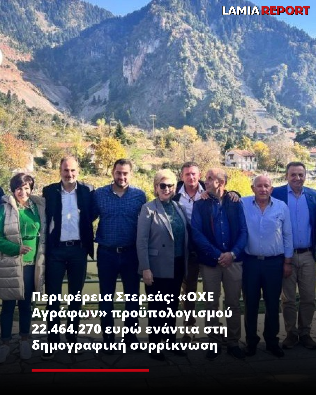 Περιφέρεια Στερεάς: «ΟΧΕ Αγράφων» προϋπολογισμού 22.464.270 ευρώ ενάντια στη δημογραφική συρρίκνωση