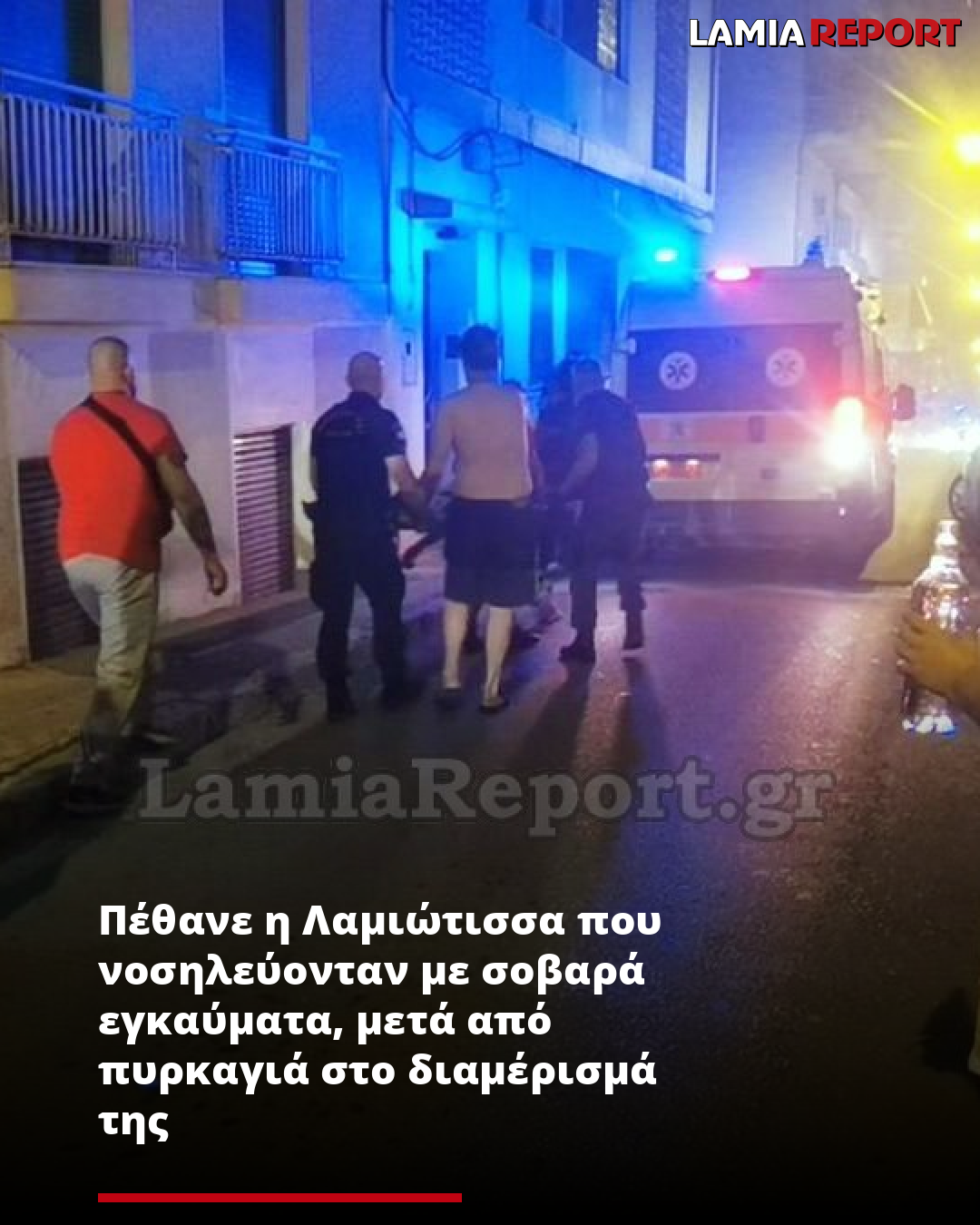 Η άτυχη ηλικιωμένη είχε μεταφερθεί με πολύ σοβαρά εγκαύματα αρχικά στο Νοσοκομείο Λαμίας, έχοντας επίσης εισπνεύσει για αρκετά λεπτά τις αναθυμιάσεις και η κατάστασή της ήταν εξαιρετικά σοβαρή.