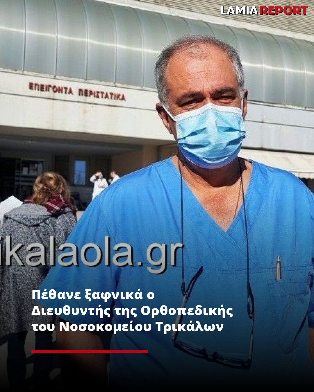 Πέθανε ξαφνικά ο Διευθυντής της Ορθοπεδικής του Νοσοκομείου Τρικάλων