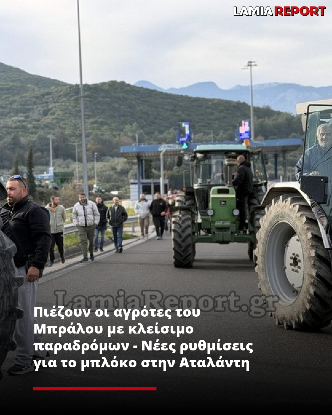 Για το μπλόκο των αγροτών στη Σκάλα Αταλάντης, η Διεύθυνση Αστυνομίας Φθιώτιδας ανακοίνωσε από τις 12 το μεσημέρι της Δευτέρας (29/12/25) τροποποίηση των κυκλοφοριακών ρυθμίσεων και ειδικότερα: