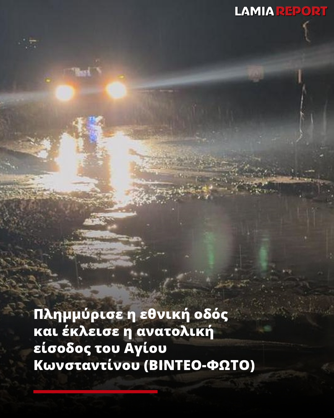 Πλημμύρισε η εθνική οδός και έκλεισε η ανατολική είσοδος του Αγίου Κωνσταντίνου (ΒΙΝΤΕΟ-ΦΩΤΟ)