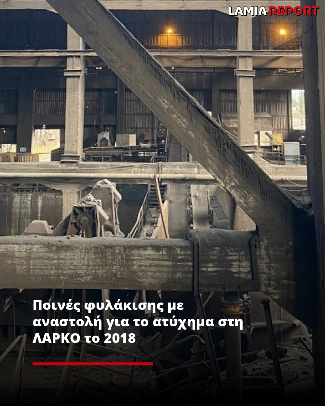 Δεκαπέντε μήνες ποινή φυλάκισης με 3ετη αναστολή, επέβαλλε το Μονομελές Πλημμελειοδικείο Λαμίας στον τότε Πρόεδρο του Εργοστασίου της ΛΑΡΚΟ στη Λάρυμνα και στον υπεύθυνο Διευθυντή για τα μέτρα ασφαλείας, για το εργατικό ατύχημα που σημειώθηκε στις 9 Οκτωβρίου του 2018.