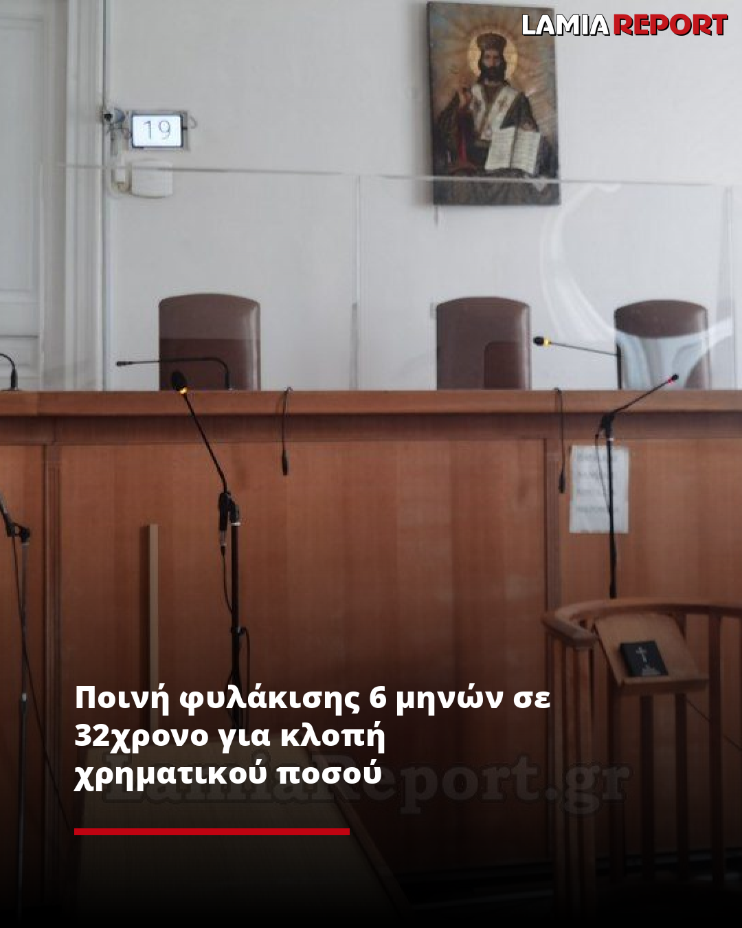 Ποινή φυλάκισης 6 μηνών σε 32χρονο για κλοπή χρηματικού ποσού