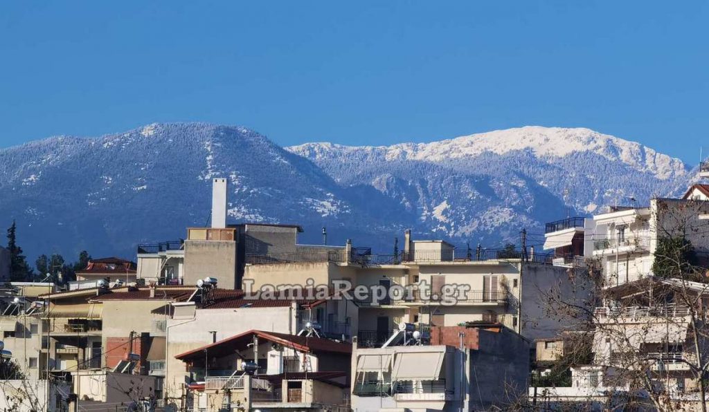 Τα σύννεφα βέβαια έδωσαν τη θέση τους σε έναν λαμπρό ήλιο και αποκαλύφθηκε το νέο χιόνι στην Οίτη και στα γύρω ορεινά που βοηθάνε ώστε οι θερμοκρασίες να είναι άκρως χειμωνιάτικες.