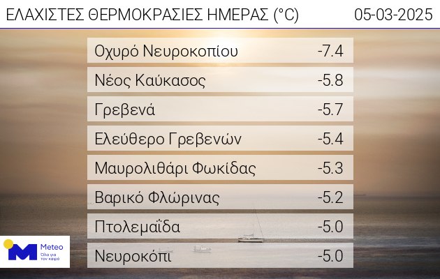 Ενδεικτικά στο Μαυρολιθάρι Φωκίδας είχαμε μία από τις χαμηλότερες θερμοκρασίας της ημέρας όπως φαίνεται και στον σχετικό πίνακα του meteo.gr/EAA.