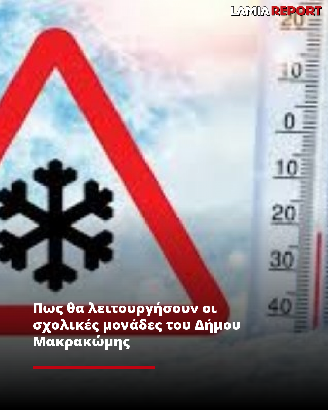 Με απόφαση του δημάρχου Μακρακώμης Γιώργου Χαντζή, τα σχολεία του Δήμου Μακρακώμης αύριο Πέμπτη 16 Ιανουαρίου 2025 θα λειτουργήσουν από τις 10:00 π.μ λόγω επικράτησης έντονου παγετού σε όλο το Δήμο.