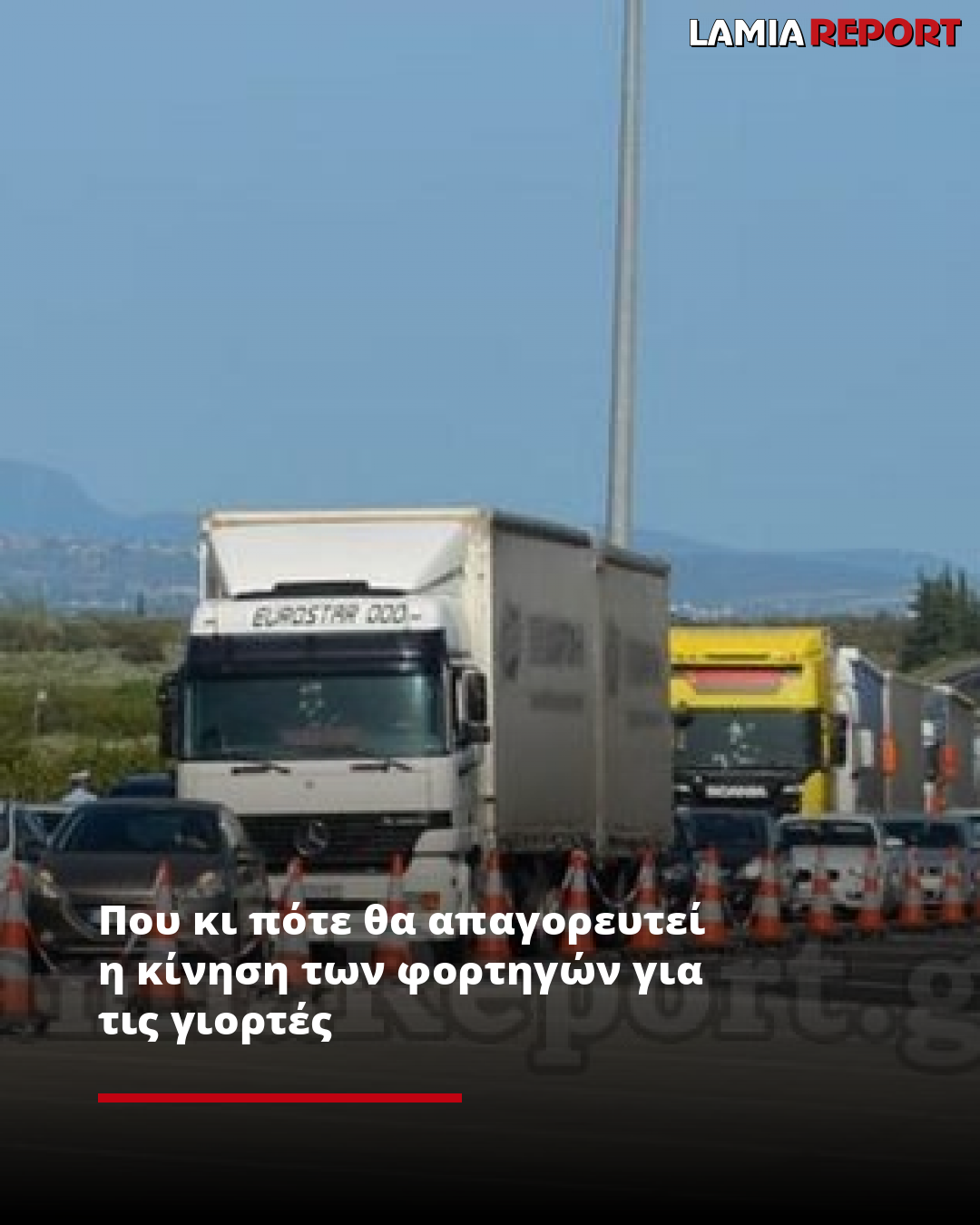 Για την ασφαλέστερη κίνηση των οχημάτων και τη βελτίωση της οδικής κυκλοφορίας κατά την περίοδο των εορτών των Χριστουγέννων, της Πρωτοχρονιάς και των Θεοφανείων, εκτός των μέτρων διευκόλυνσης και κυκλοφορίας, που θα ληφθούν σε τοπικό επίπεδο, θα ισχύσει και απαγόρευση κυκλοφορίας όλων των φορτηγών αυτοκινήτων μέγιστου επιτρεπόμενου βάρους άνω των 3,5 τόνων, στα τμήματα των αυτοκινητοδρόμων και εθνικών οδών, ως κατωτέρω: