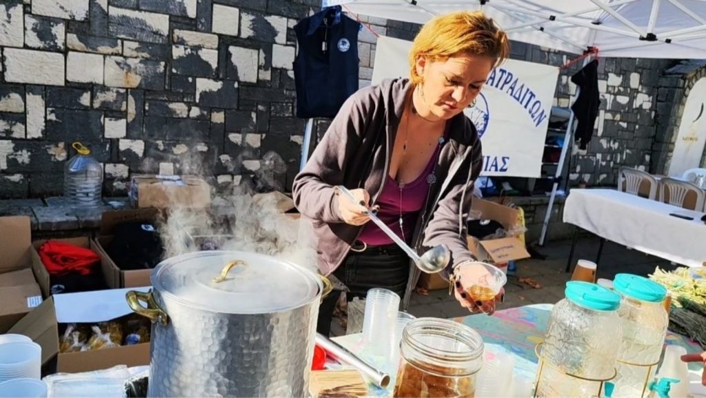 Ο Σύλλογος Αγιοτριαδιτών προσέφερε ψητά κάστανα, ζεστό τσάι βουνού και τραχανά, ενώ η γιορτή φέτος συνδυάστηκε με εύρος παράλληλων δραστηριοτήτων.