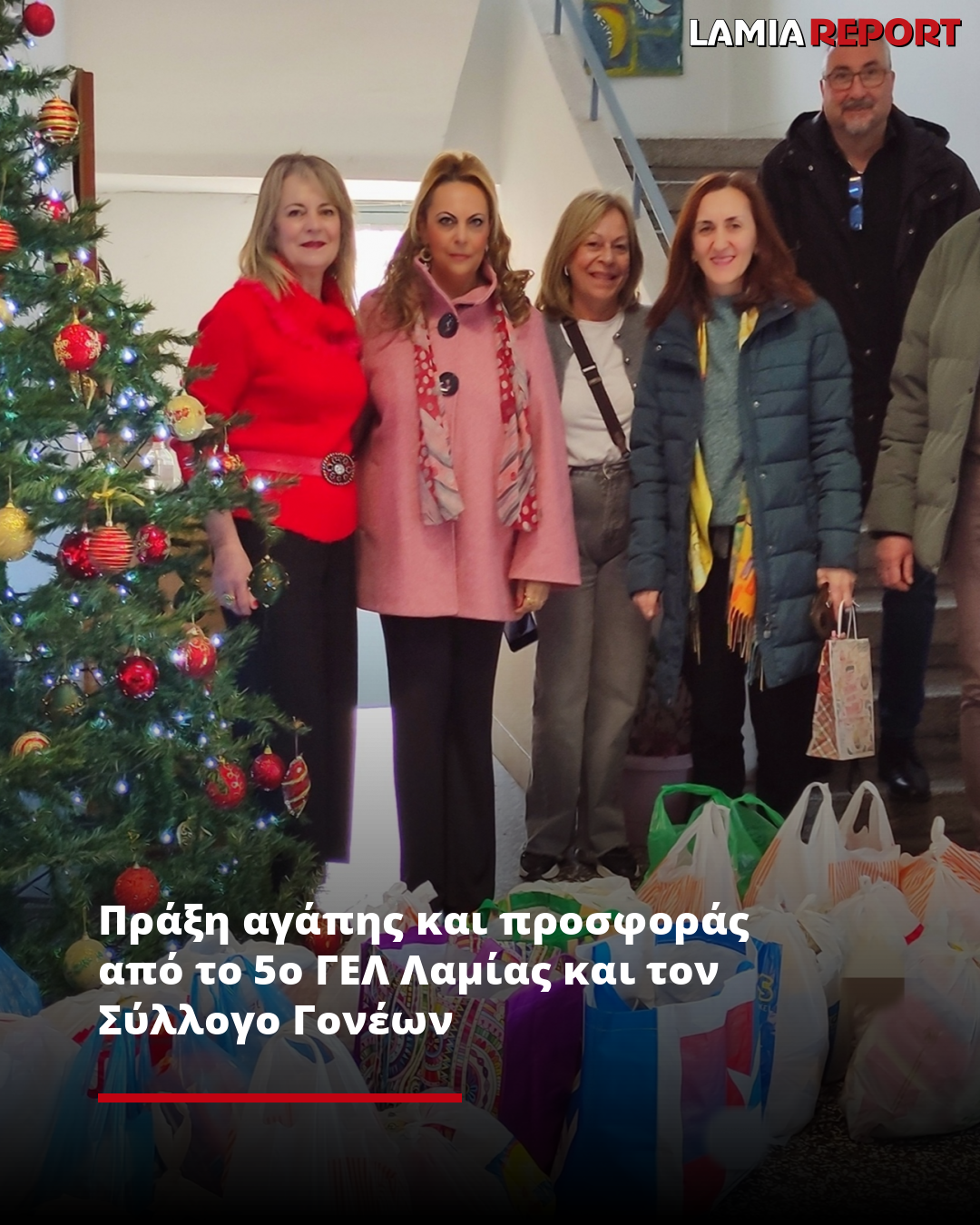Το 5ο Γενικό Λύκειο Λαμίας σε συνεργασία με τον Σύλλογο Γονέων & Κηδεμόνων, στο πλαίσιο της κοινωνικής προσφοράς και αλληλεγγύης συγκέντρωσε τρόφιμα, αγαθά πρώτης ανάγκης και είδη ατομικής υγιεινής με σκοπό την ενίσχυση του Παραρτήματος Προστασίας Παιδιού του Κέντρου Κοινωνικής Πρόνοιας Περιφέρειας Στερεάς, εν όψη των εορτών των Χριστουγέννων.