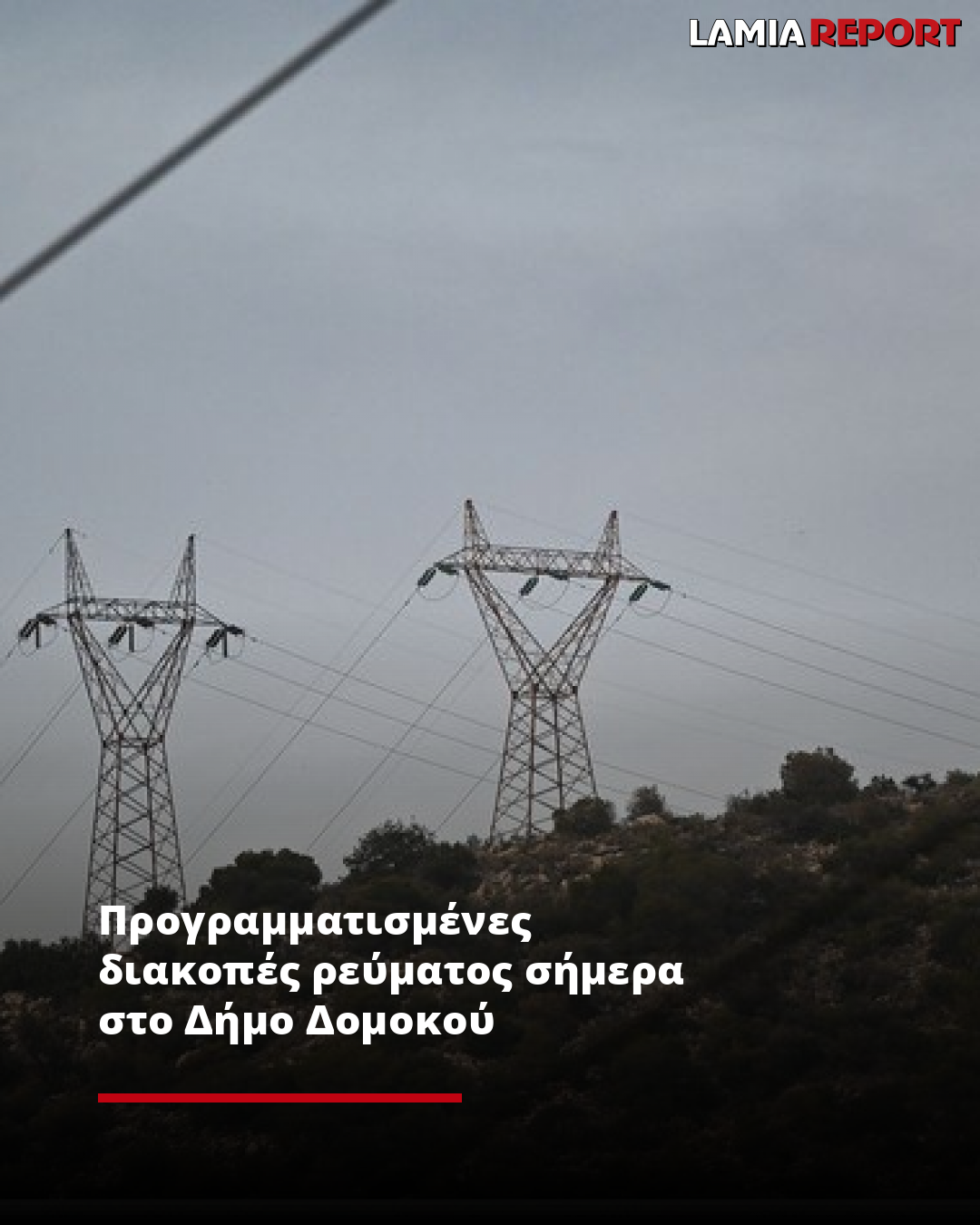 Προγραμματισμένες διακοπές ρεύματος σήμερα στο Δήμο Δομοκού