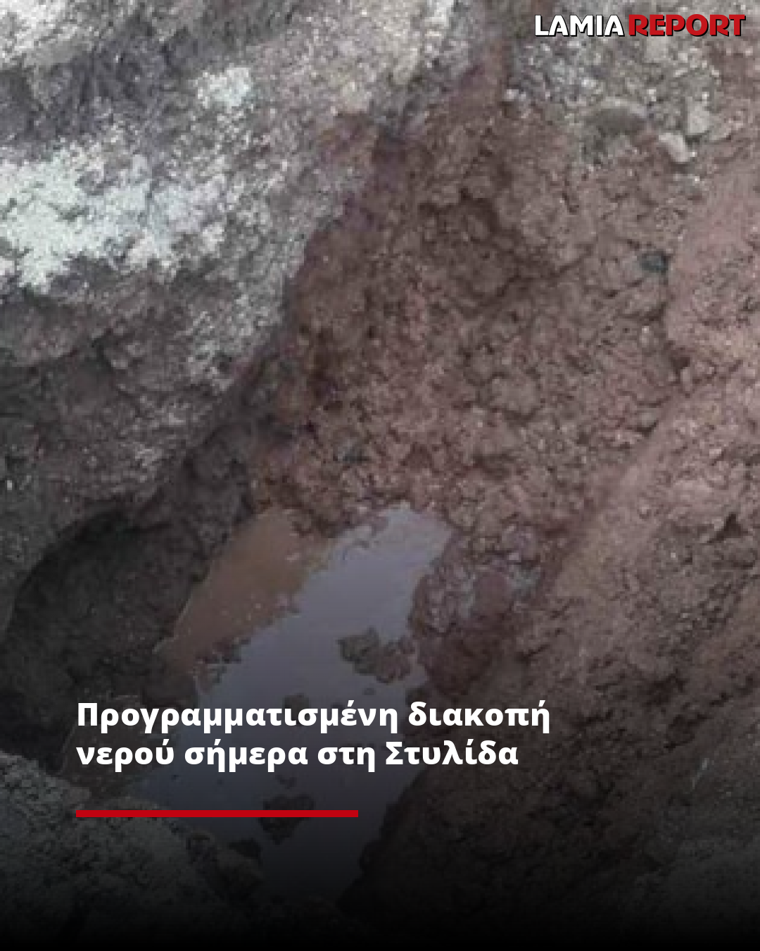 Λόγω βλάβης σε κεντρικό αγωγό ύδρευσης στην πόλη της Στυλίδας και συγκεκριμένα έναντι του Ι.Ν. Αγίας Αικατερίνης, έχει προγραμματιστεί για σήμερα Δευτέρα 28/04/2025 διακοπή ύδρευσης στη Δυτική Στυλίδα.