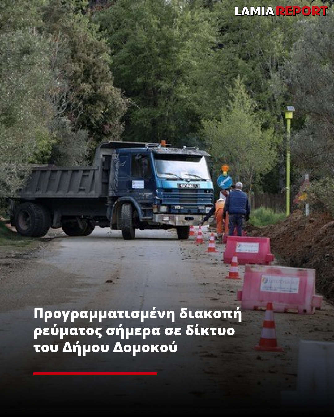 Προγραμματισμένη διακοπή ρεύματος σήμερα σε δίκτυο του Δήμου Δομοκού