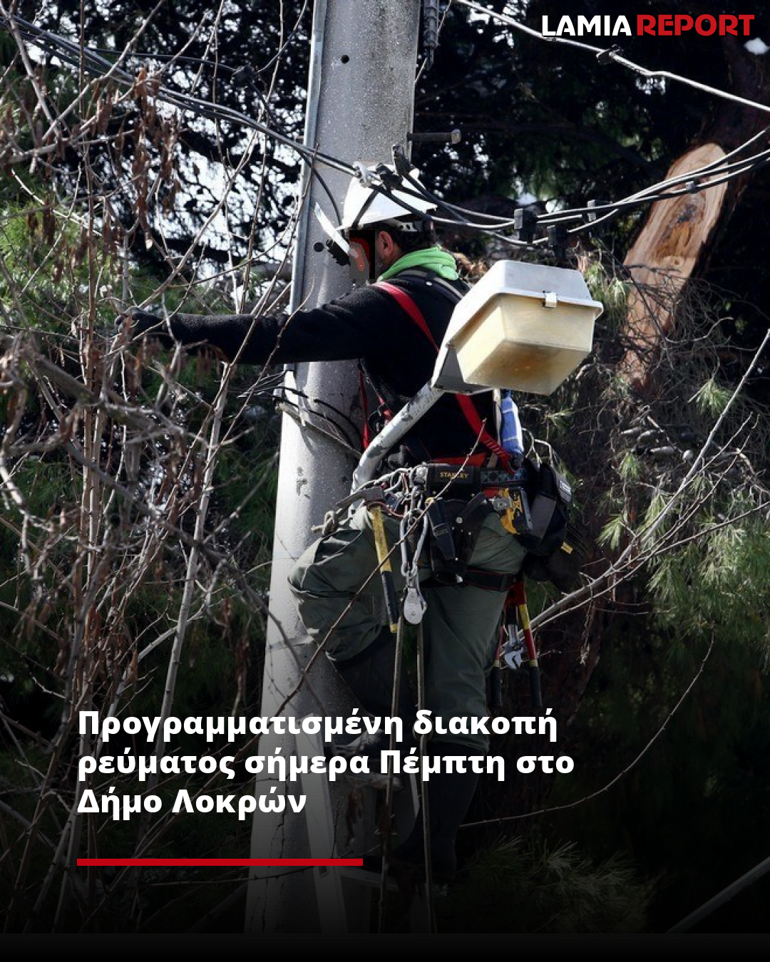 Προγραμματισμένη διακοπή ρεύματος σήμερα Πέμπτη στο Δήμο Λοκρών