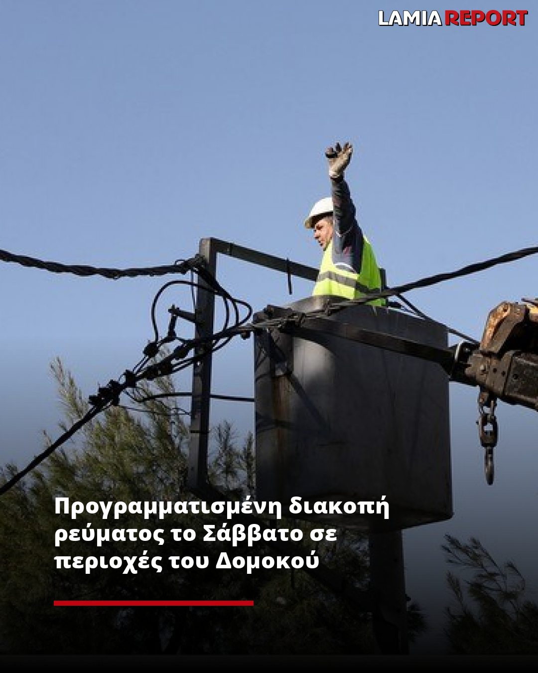 Προγραμματισμένη διακοπή ρεύματος το Σάββατο σε περιοχές του Δομοκού