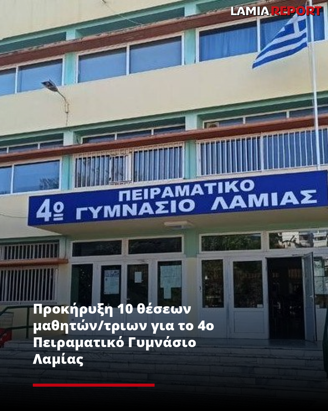 Προκήρυξη 10 θέσεων μαθητών/τριων για το 4ο Πειραματικό Γυμνάσιο Λαμίας