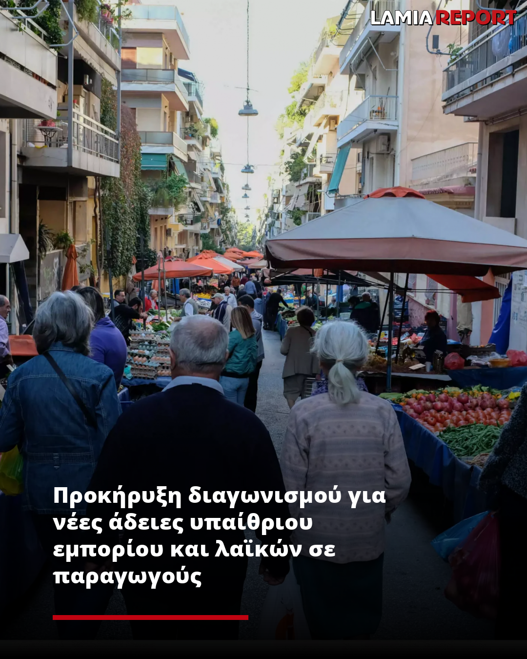 Προκήρυξη διαγωνισμού για νέες άδειες υπαίθριου εμπορίου και λαϊκών σε παραγωγούς