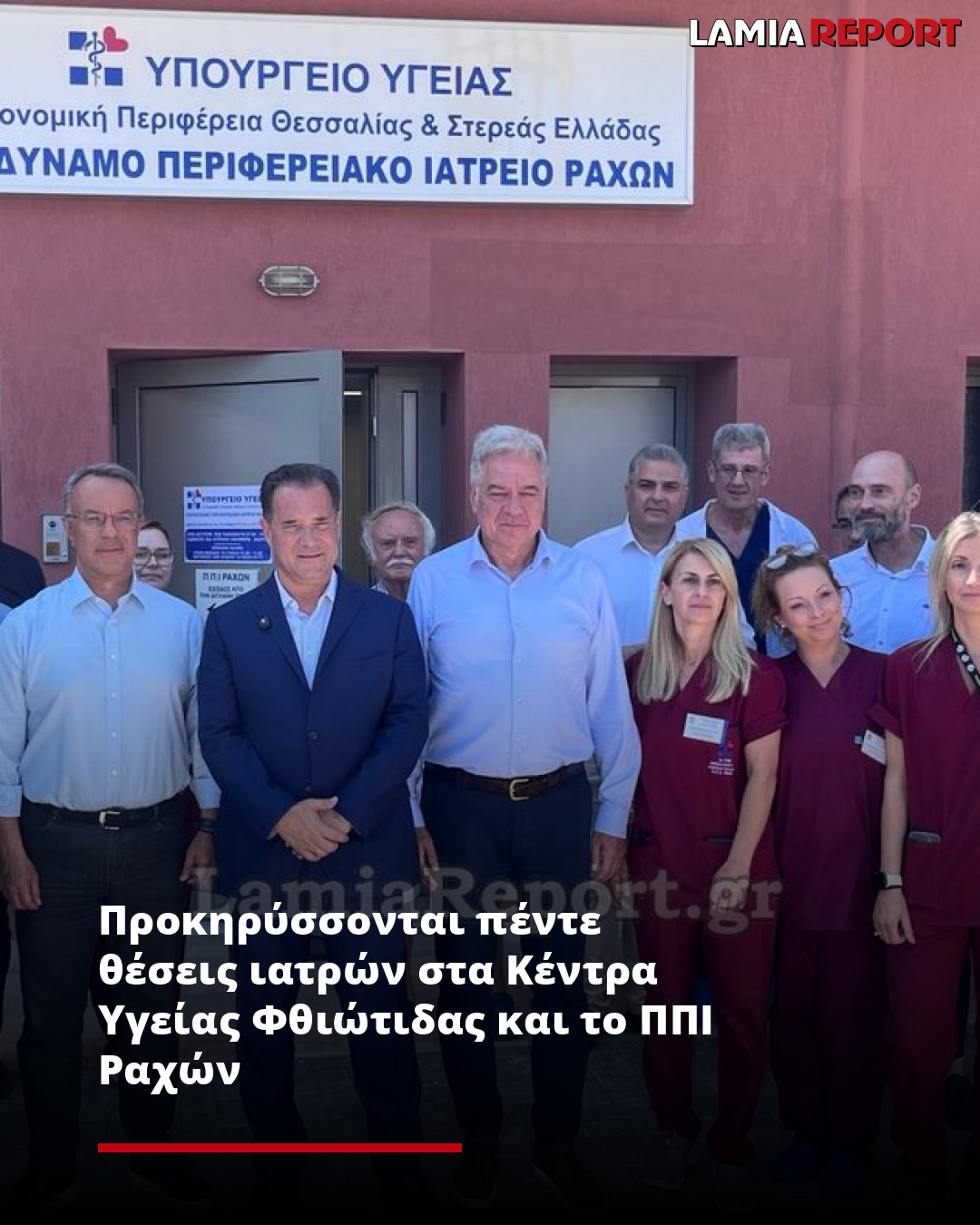 Προκηρύσσονται πέντε θέσεις ιατρών στα Κέντρα Υγείας Φθιώτιδας και το ΠΠΙ Ραχών