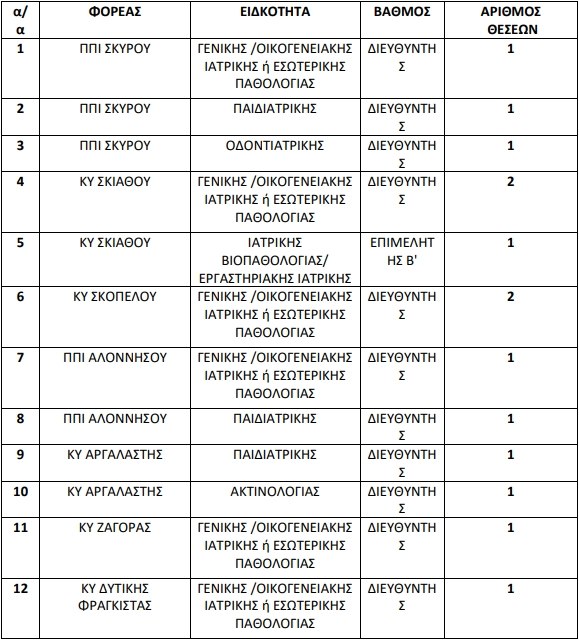 Ειδικά για την 5η Υγειονομική Περιφέρεια Θεσσαλίας & Στερεάς Ελλάδας οι θέσεις παρουσιάζονται στον παρακάτω πίνακα: