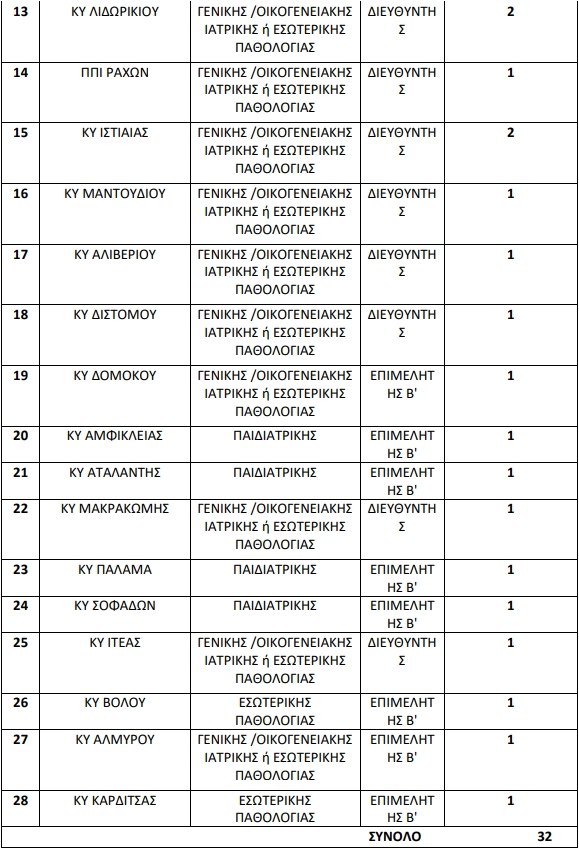 ▪ 5η ΥΠΕ Θεσσαλίας & Στερεάς Ελλάδας: 32 θέσεις (5 για τη Φθιώτιδα)