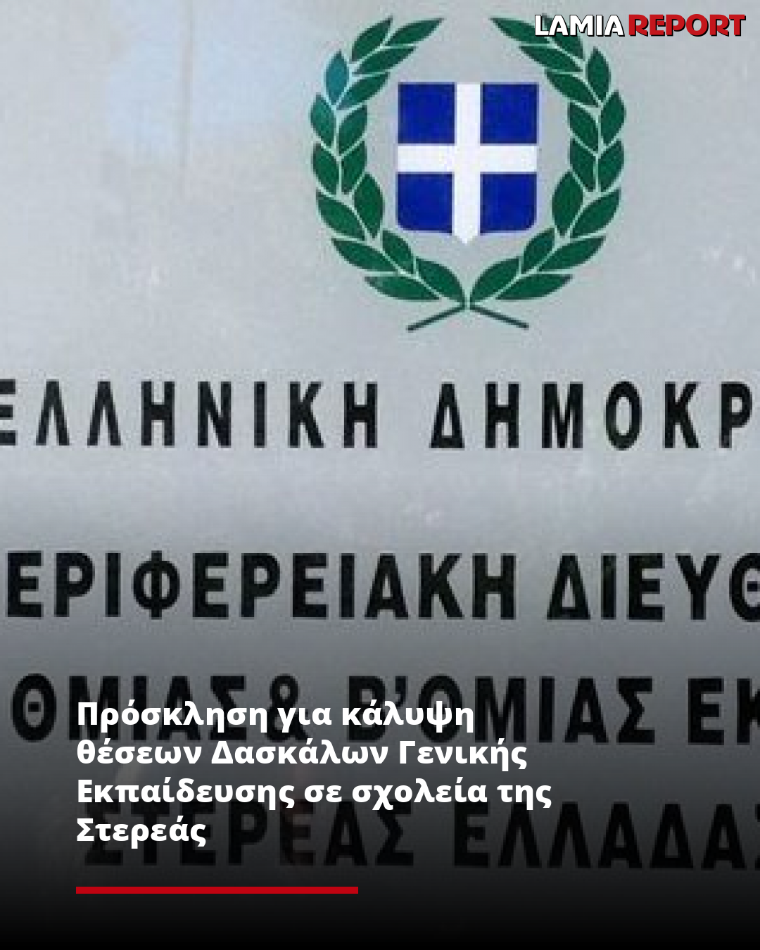 Πρόσκληση για κάλυψη θέσεων Δασκάλων Γενικής Εκπαίδευσης σε σχολεία της Στερεάς