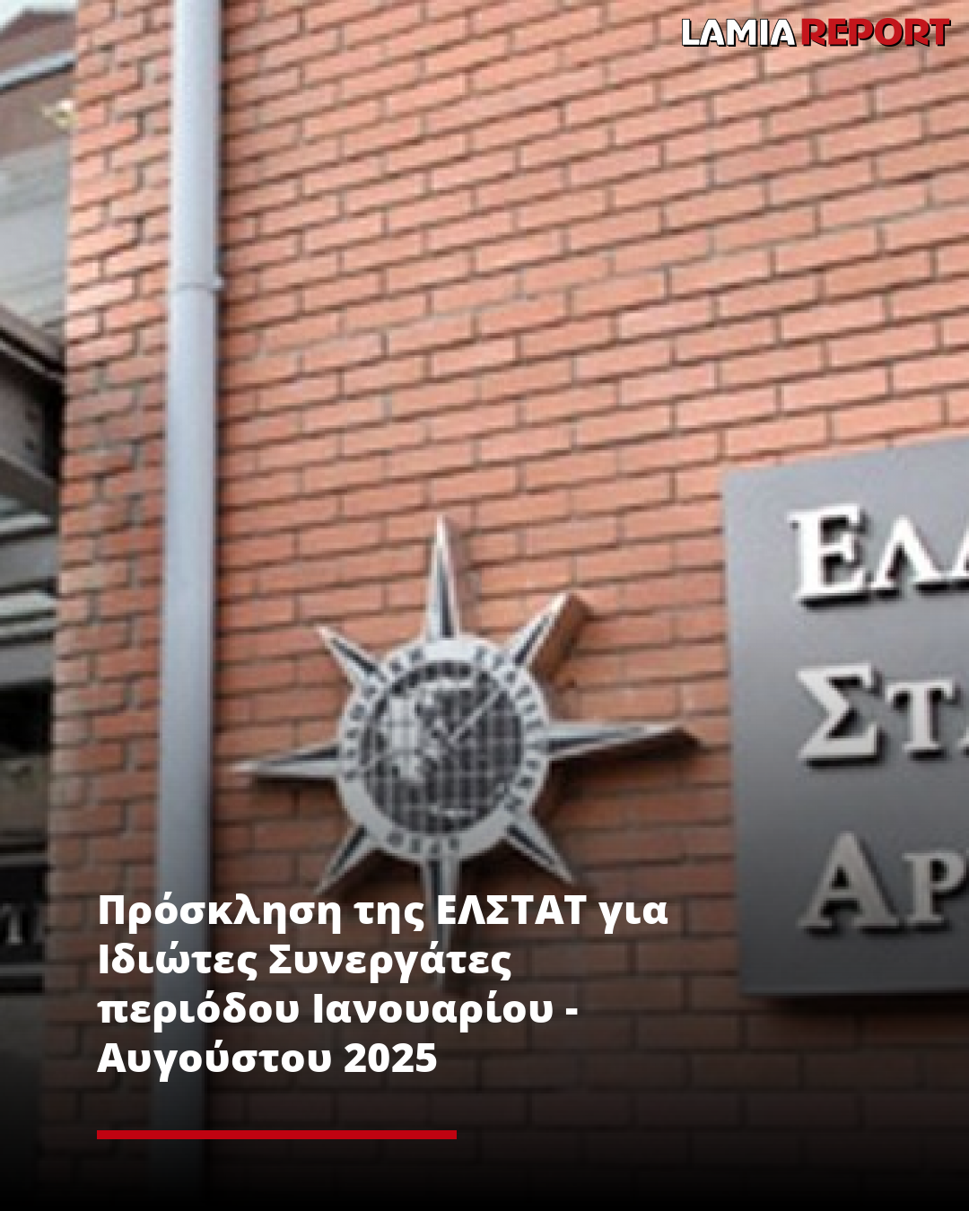 Πρόσκληση της ΕΛΣΤΑΤ για Ιδιώτες Συνεργάτες περιόδου Ιανουαρίου - Αυγούστου 2025