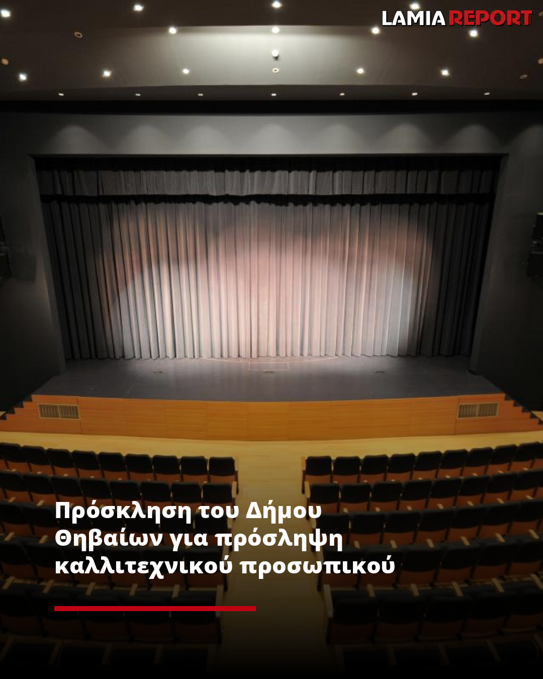 Στο πλαίσιο της προγραμματικής σύμβασης μεταξύ ΠΕΔ Στερεάς Ελλάδας και ΔΗΠΕΘΕ Ρούμελης, με τη συνεργασία του Υπουργείου Πολιτισμού και της Περιφέρειας Στερεάς Ελλάδας για τη λειτουργία θεατρικών εργαστηρίων σε 11 Δήμους της Στερεάς Ελλάδας μεταξύ των οποίων και ο Δήμος Θηβαίων, το ΔΗΠΕΘΕ Ρούμελης απευθύνει πρόσκληση για την πρόσληψη καλλιτεχνικού προσωπικού (Θεατρολόγους, Θεατρο-παιδαγωγούς, ηθοποιούς με εμπειρία στη διδασκαλία θεατρικών εργαστηρίων) με τους ενδιαφερόμενους να καλούνται να καταθέσουν μέχρι και τις 10 Οκτωβρίου 2025 τα βιογραφικά τους στο e-mail: [email protected]