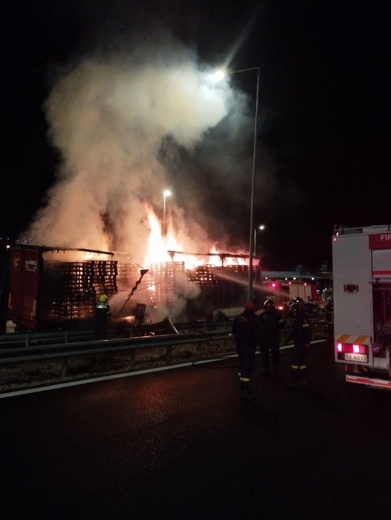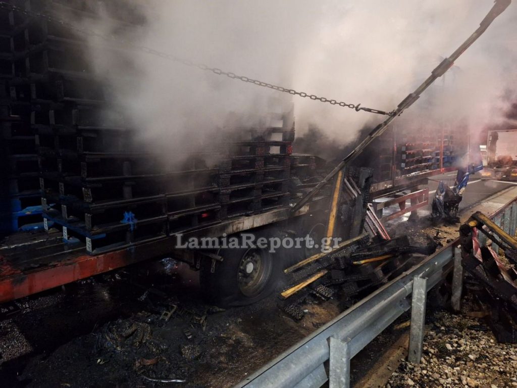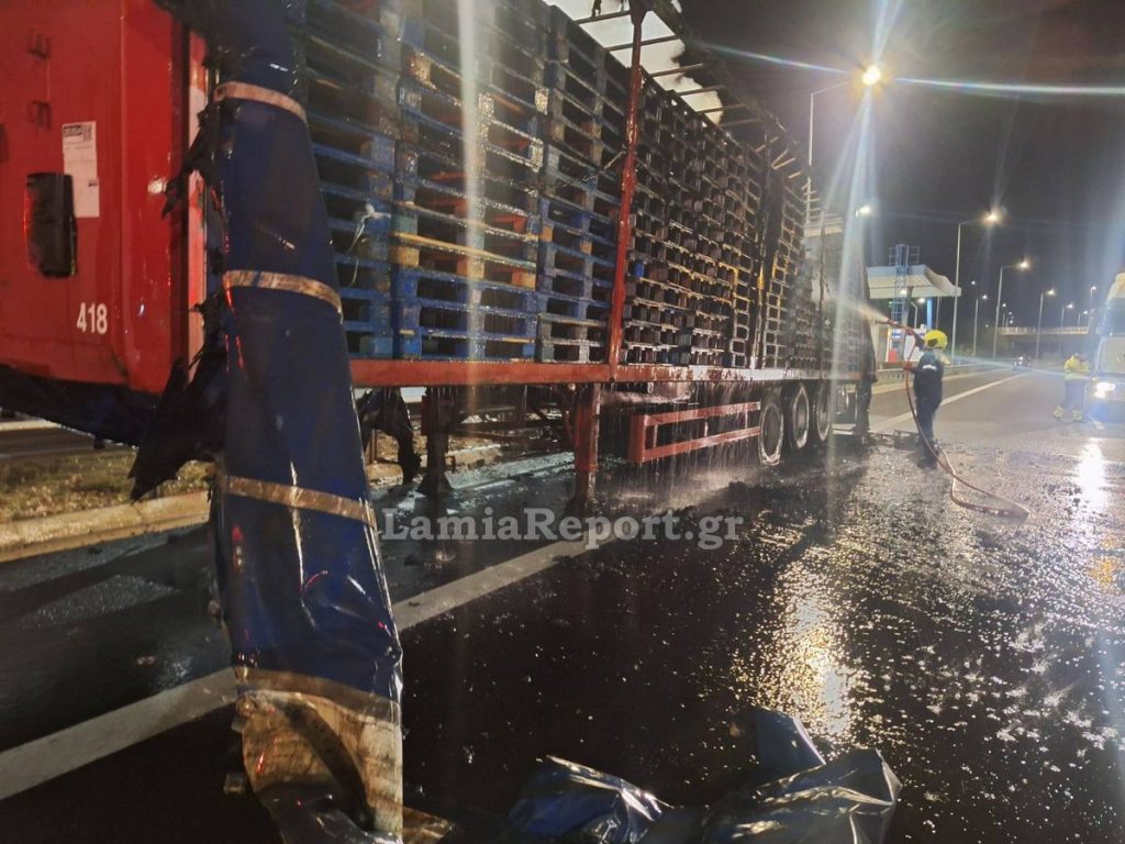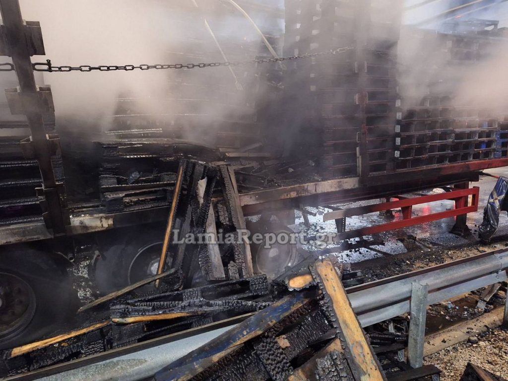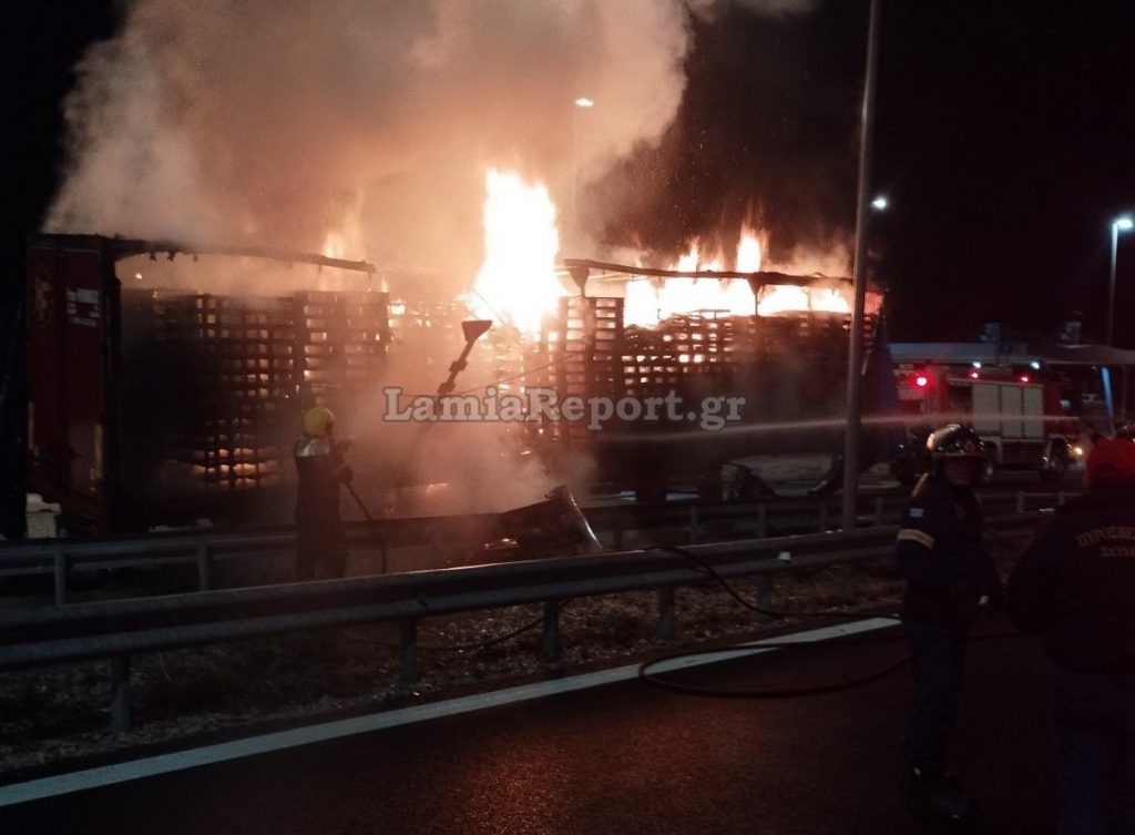 Πυρκαγιά σε νταλίκα που κινούνταν στην εθνική οδό στο ύψος της Λαμίας (ΒΙΝΤΕΟ-ΦΩΤΟ)